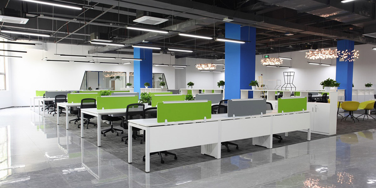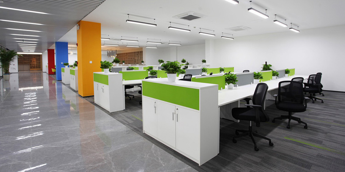 Colorful staff office area